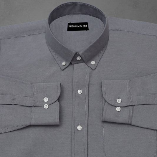 New Dark Grey Oxford Cotton Shirt For Men