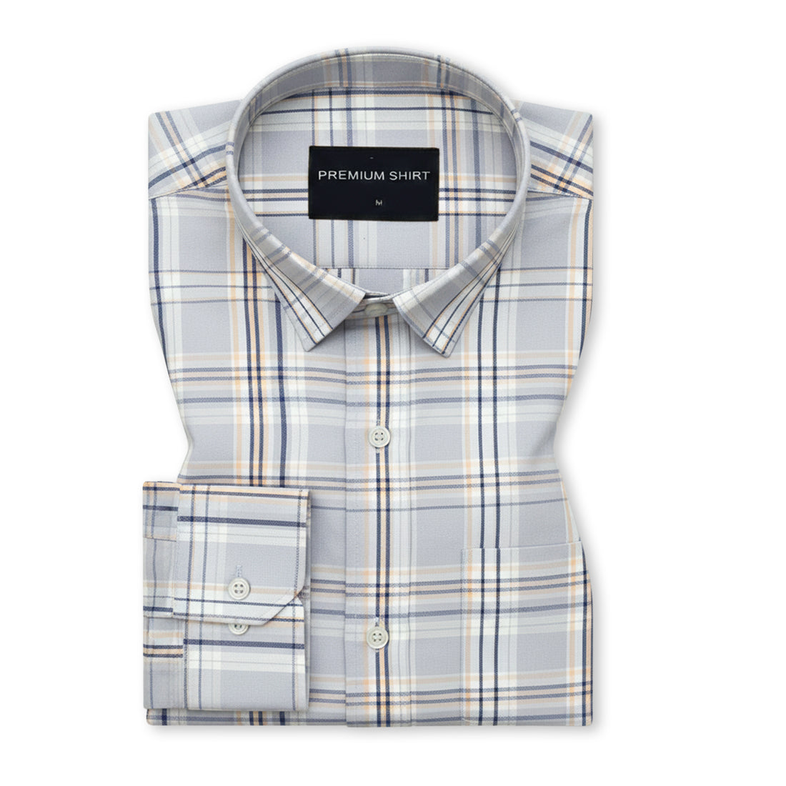 Graphite Mustard Classic Check Paper Cotton Shirt For Men