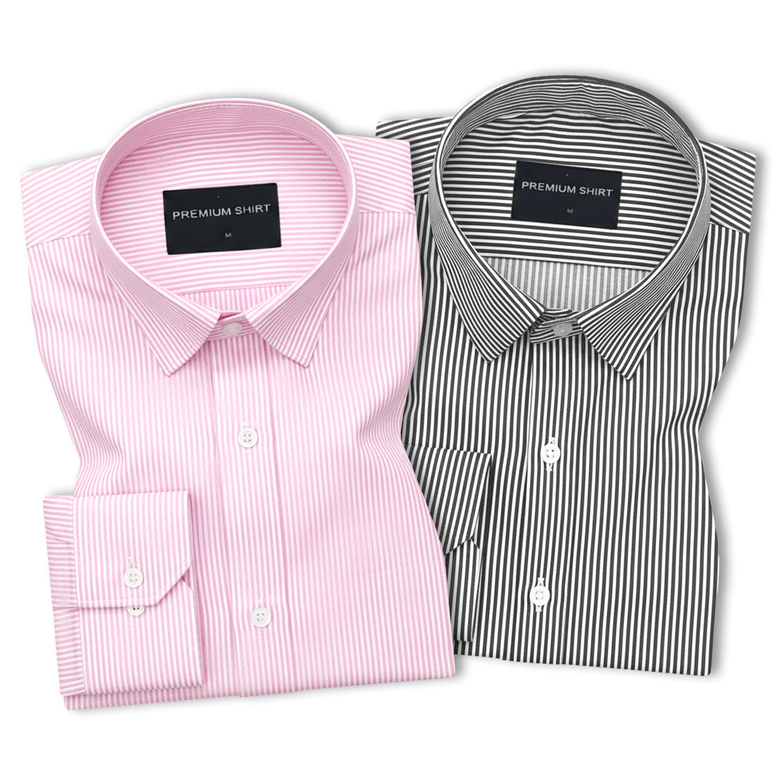 Pack of 2 Pink & Black Cotton Blend Stripes Shirts Bundle For Men