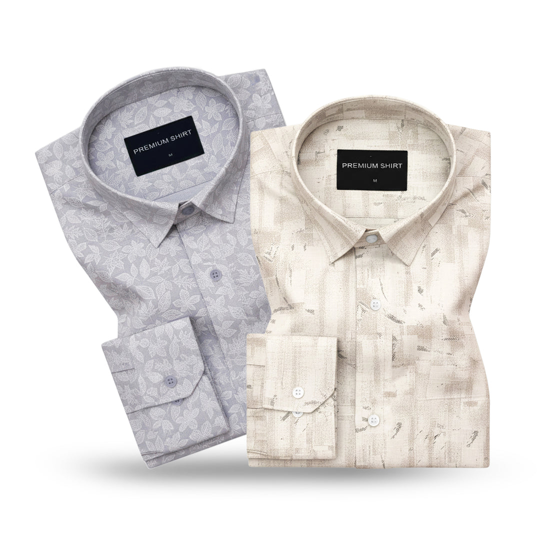 Pack of 2 Frosted Lavender & Sandstone Abstract Linen Shirts Bundle For Men