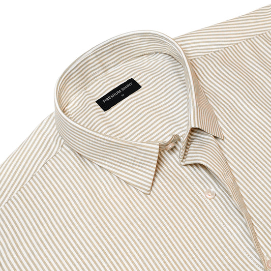 Bold Beige Pinstripe Oxford Shirt For Men