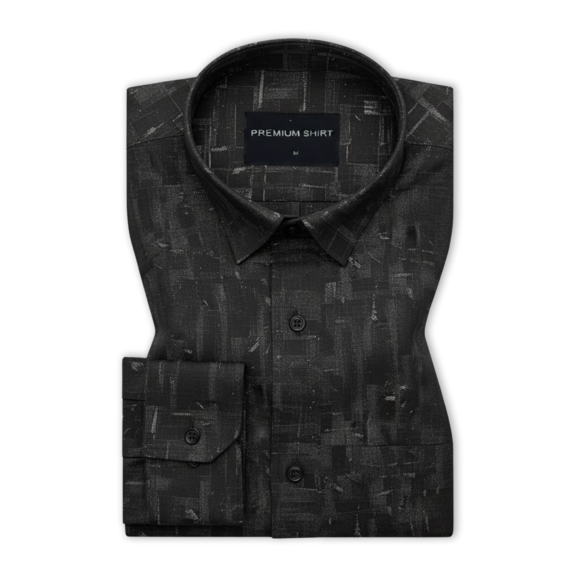 Charcoal Drift Abstract Linen Shirt For Men