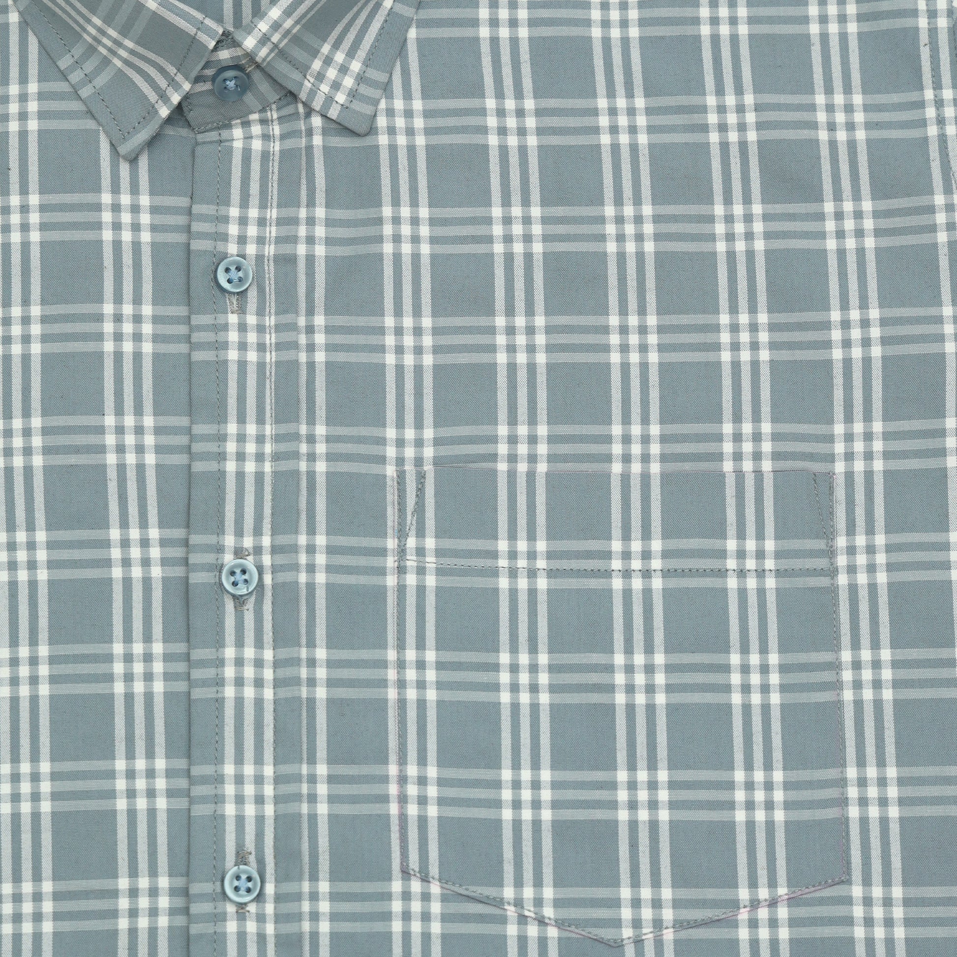Frosted Teal Classic Check Paper Cotton Shirt For Men