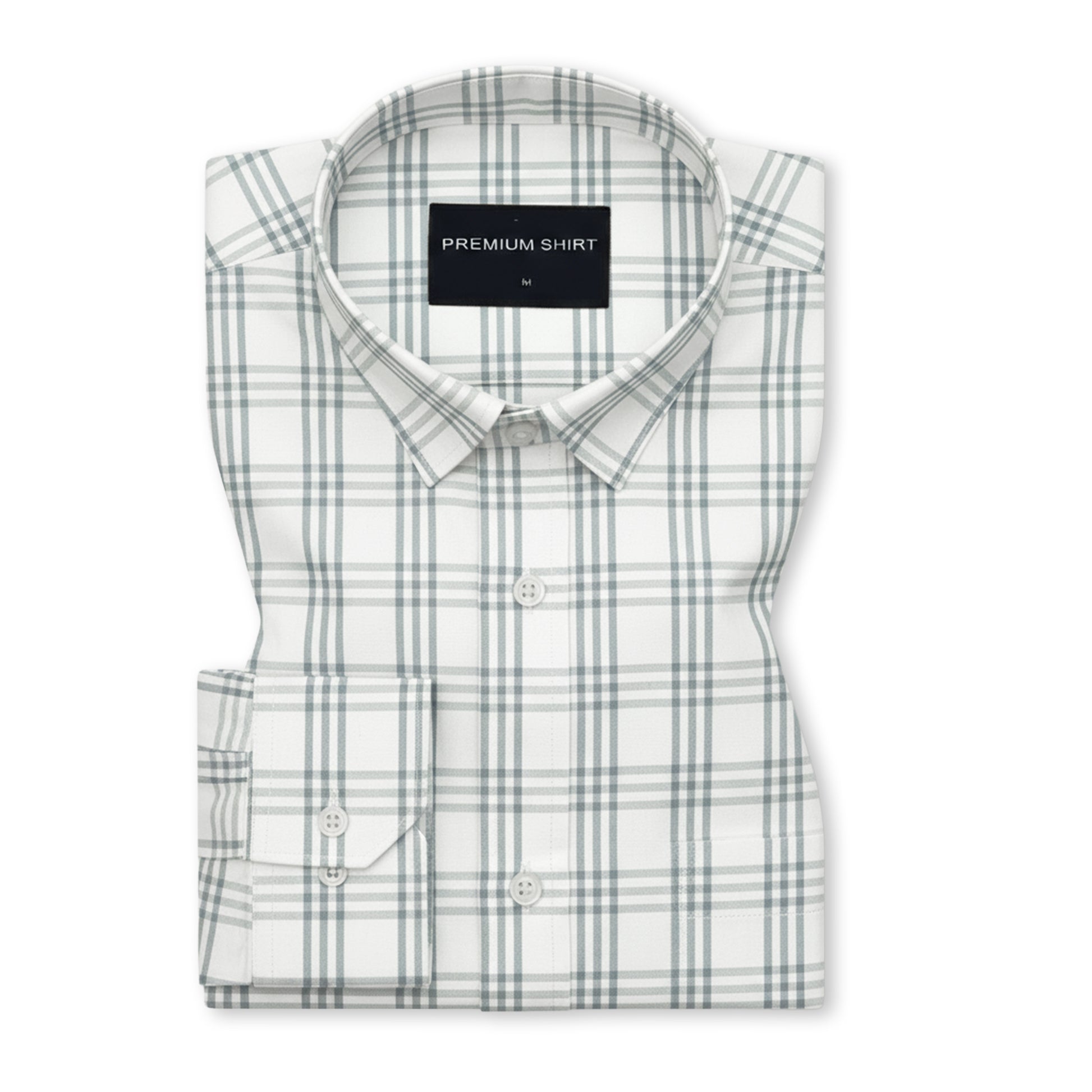 Mist Blue Classic Check Paper Cotton Shirt For Men