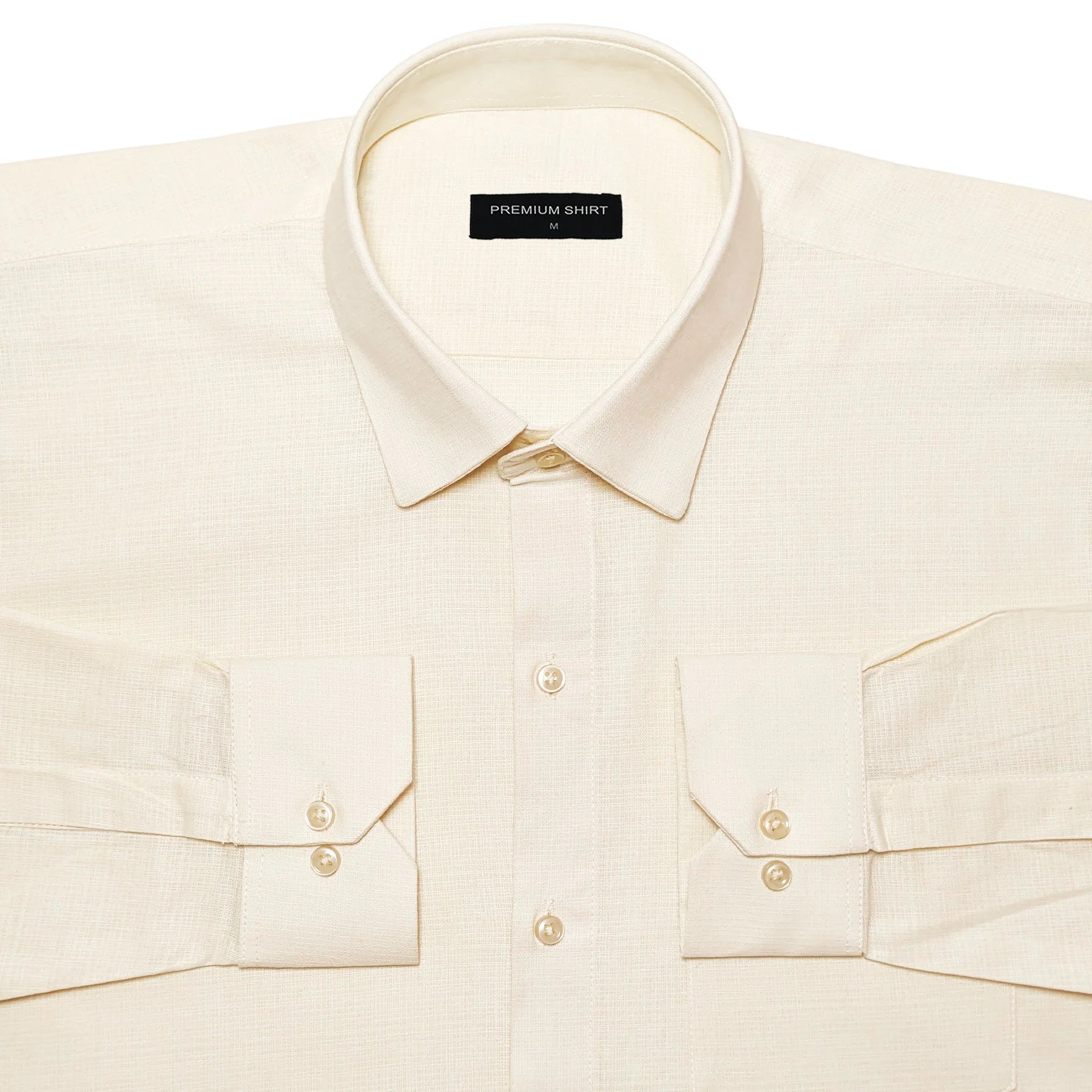 Cream Textured Linen Shirt For Men