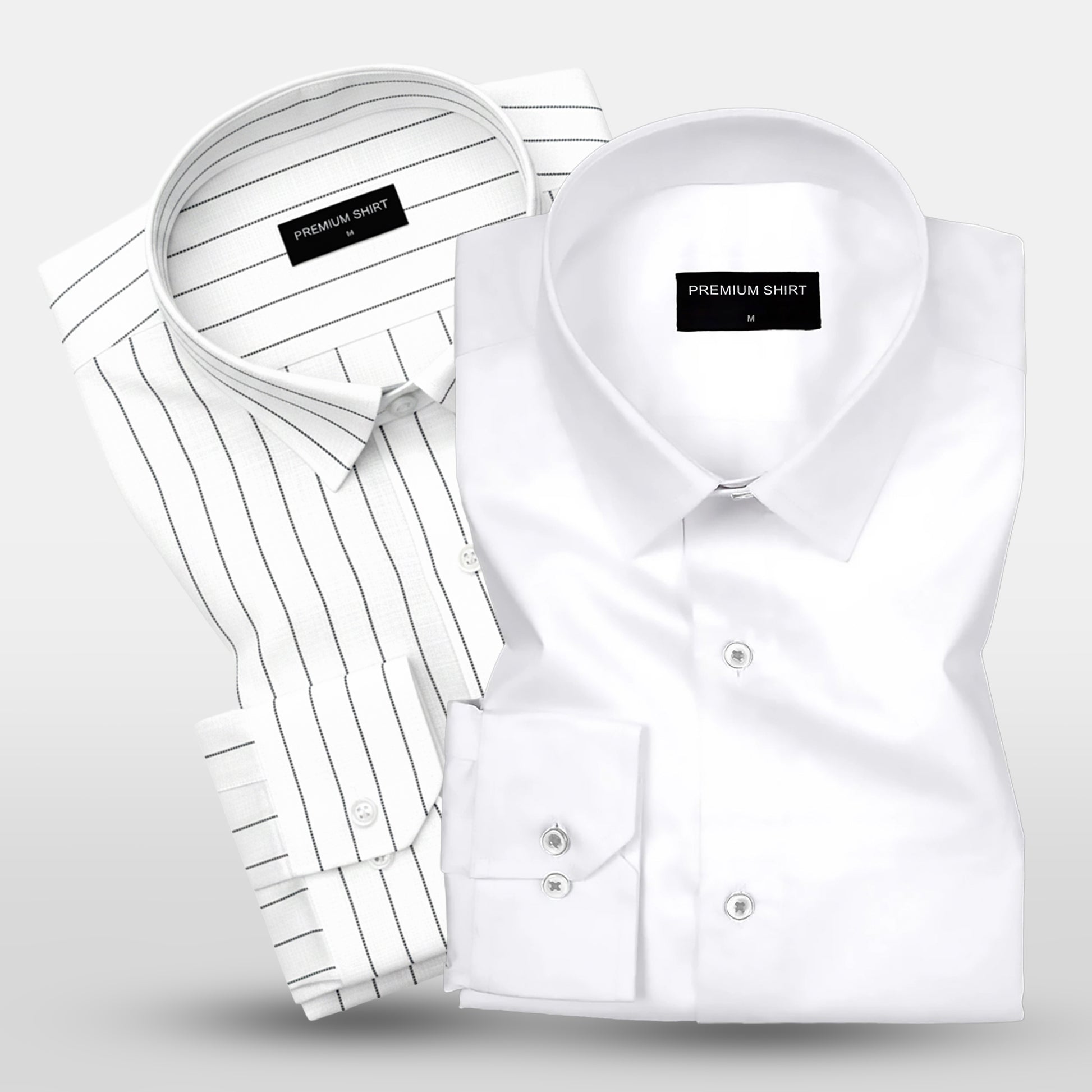 Pearl White Satin & Fine Black Pinstripe Linen Shirts Bundle for Men