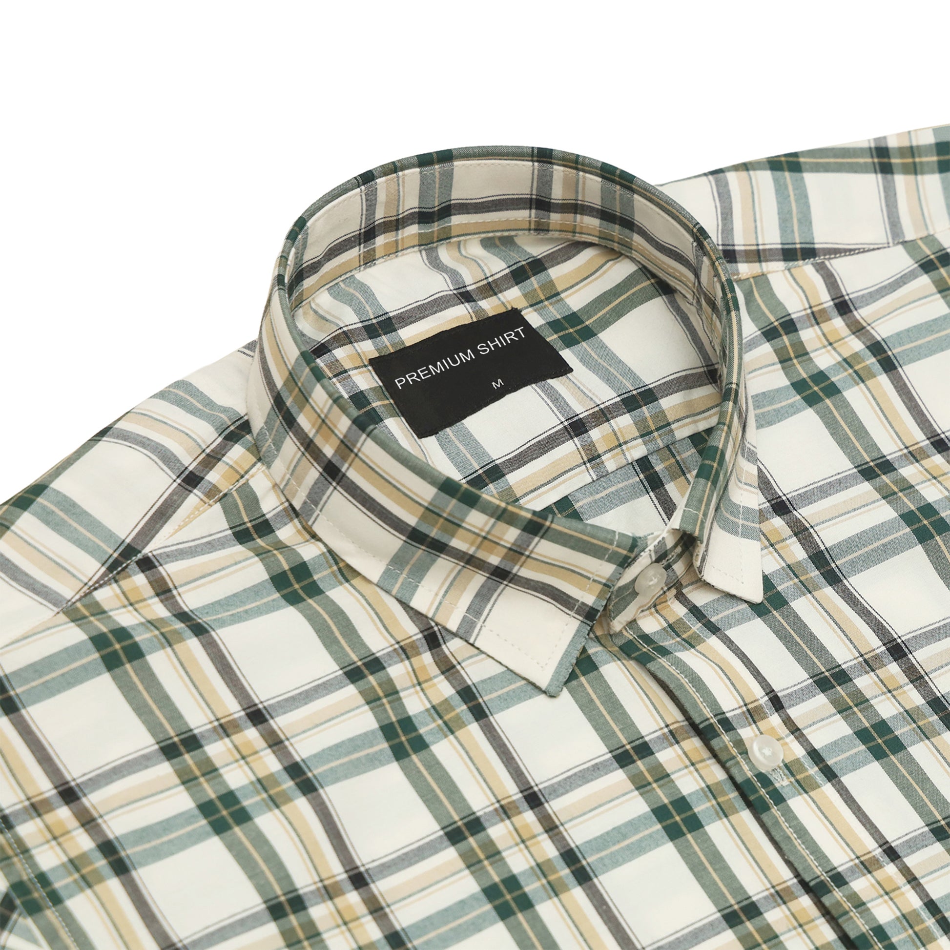 Pack of 2 Amber Forest & Golden Beige Classic Check Cotton Shirts Bundle For Men