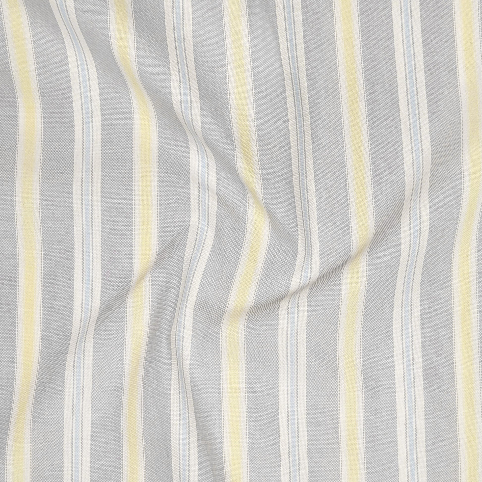 Thank you for your review! We are glad to hear that you are enjoying the material of our Soft Grey Oxford Stripe Cotton Shirt. Here at [brand], we strive to use high-quality materials for our products. Thank you for choosing us!